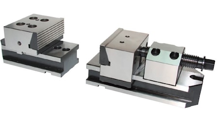 Данные модульные стальные тиски используются в станках для зажима габаритных заготовок.