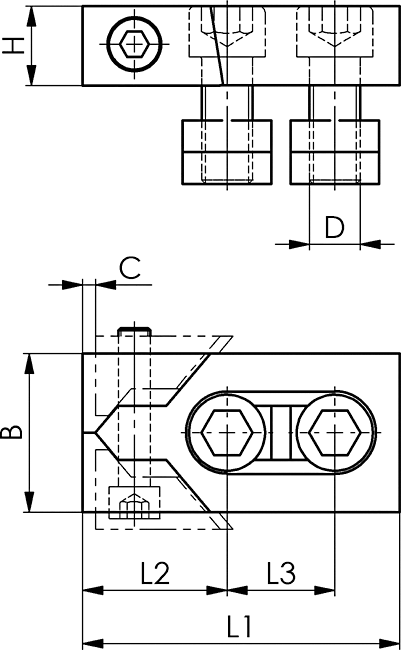 Упаковка: 2 в коробке в комплекте с крепежным винтом ISO 4762 (10.9), гайками для T-образных пазов DIN 508 и отверткой для винтов с шестигранной головкой ISO 2936.