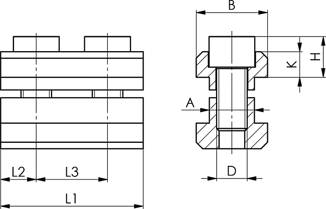 | № заказа | Паз | A | B | D | H | K | L1 | L2 | L3 | Вес [g] |