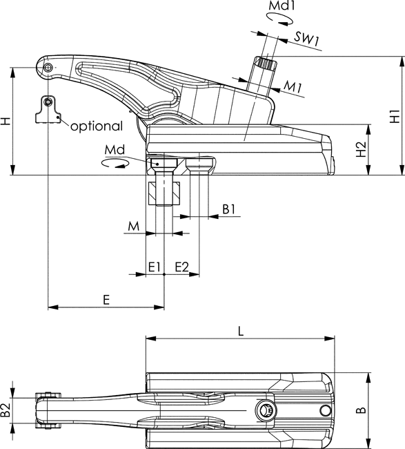 Мощный зажимной элемент из легированной улучшенной стали в кованном варианте для переменной высоты зажима, с перемещаемой базовой деталью.