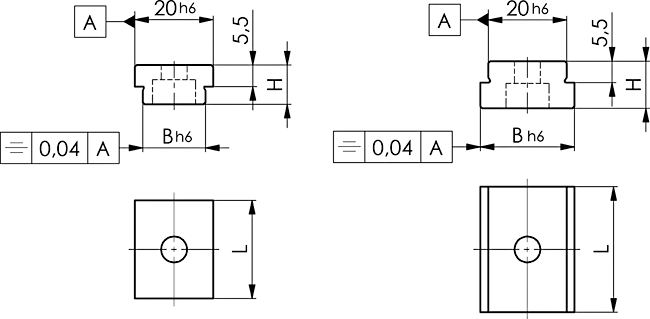 № заказа | Номинальный размер паза в станке B | Номинальный размер паза в приспособлении | H | L | Винт с цилиндрической головкой DIN84 или ISO4762 | Вес [g] |
