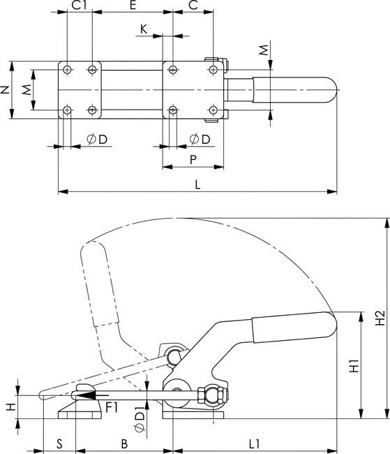 | № заказа | Размер | B | C | C1 | dia. D1 | D | E | H | H1 | H2 | K | L | L1 | M | N | P | S |