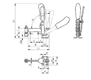 Вертикальное зажимное устройство с предохранительным фиксатором № 6804S AMFв закрытом и открытом положении.С массивным зажимным рычагом и горизонтальной опорой.Оцинковано и пассивировано. Заклепки из нержавеющей стали,двигающиеся в закаленных опорных втулках. Опорные участкисмазаны. Эргономичная, маслостойкая ручка с большим подручникоми мягкой вставкой. Предохранительный зажимной элемент с защитойдля пальцев.В комплекте с оцинкованным прижимным винтом № 6890 изулучшенной стали и втулкой для приваривания.