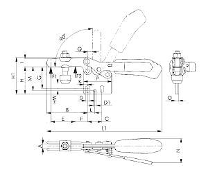 в закрытом и открытом положении. С открытым зажимным рычагом и вертикальной опорой. Оцинковано и пассивировано. Заклепки из нержавеющей стали, двигающиеся в закаленных опорных втулках. Опорные участки смазаны. Эргономичная, маслостойкая ручка с большим подручником и мягкой вставкой. Устройство для предотвращения потери прижимного