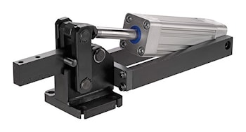 Пневматическое зажимное устройство № 6820A AMF С горизонтальной установкой цилиндра. Оснащено пневматическим цилиндром NORGREN с двойным действием, анодировано и смонтировано для замены.
