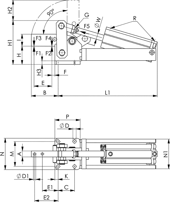 Тяжелое пневматическое зажимное устройство № 6825A AMFС горизонтальным положением цилиндра.