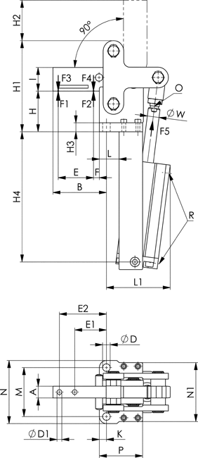 № заказа | Размер | I | K | L | L1 | M | N | N1 | O | P | R | Диам. W | Диам. поршня |