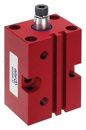 Пневматическое двойного действия. Поршневой шток из нержавеющей полированной стали, с защитой от брызг сварки. Основная часть, защита от брызг сварки и натяжная планка из алюминия. Износостойкая поверхность с покрытием HARTCOAT®. Магнитный поршень для контроля запроса конечного положения.
