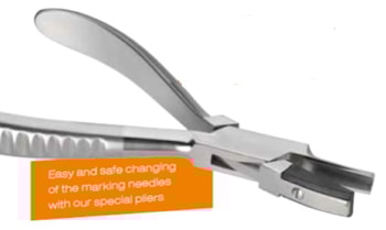Легкая и безопасная смена маркирующих иголок в устройстве для маркировки специальными плоскогубцами.