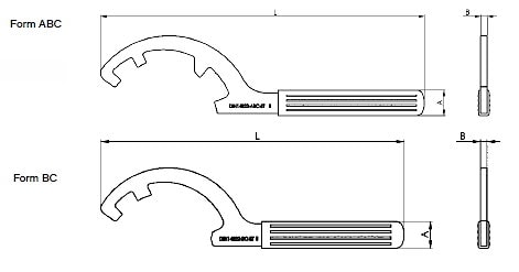 Муфтовый гаечный ключ для соединения пожарного гидранта DIN 14822 AMFКорпус-закаленная сталь, оцинкованная. Все острые края обработаны. Ручка с защитой от холода. Штампованные согласно DIN 14822-АВС (или BC).