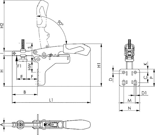 № заказа | Размер | F1 [kN] | Автоматическое выравнивание высоты S [мм] | Максимальное выравнивание высоты [мм] | Зажимной винт | Вес [г] |