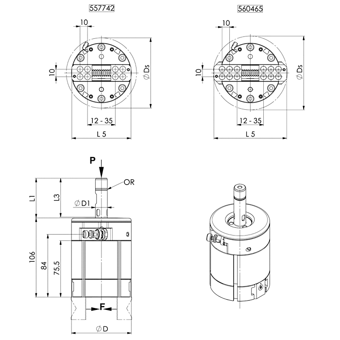 | № заказа | Мин. рабочее давление P[бар] | Макс. рабочее давление P[бар] | Ход [мм] | Сила захвата F [Н] | Вес[г] |