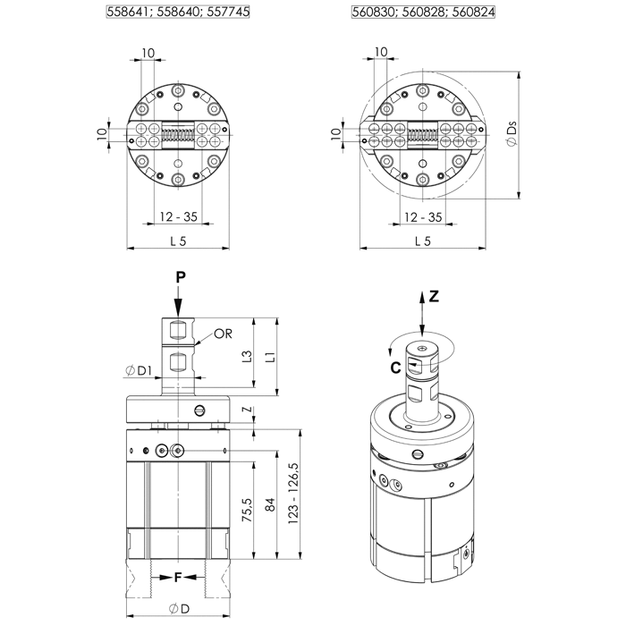 | № заказа | Мин. рабочее давление P[бар] | Макс. рабочее давление P[бар] | Ход [мм] | Сила захвата F[Н] | Вес [г] |