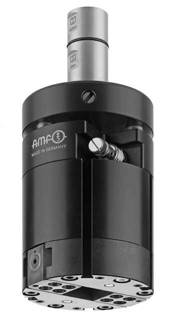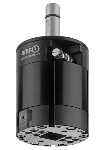 Он приводится в действие воздухом для охлаждающей смазки, который проходит через шпиндель станка. Захват закрывается гидравлически, а открытие происходит за счет усилия пружины.