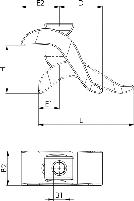 | № заказа | Размер | Для зажимного винта | H | B1 | B2 x L | D | E1 | E2 | Вес [г] |