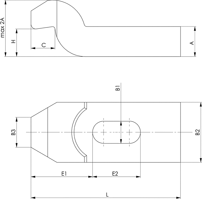 | № заказа | B1 | L | Для зажимного винта, метрическая | Для зажимного винта, дюйм | A | B2 | B3 | C | E1 | E2 | H | Вес [g] |